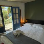 -A outra suíte da hospedagem (suíte térrea) fica no primeiro andar e conta com uma cama de casal, além de área externa para bate-papo.